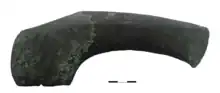 Grave offerings are scant, little more than a pot or two usually a made with crushed-shell temper. Some graves show evidence of a birch bark floor and a timber construction forming walls and roof.[14] High-status Abashevo graves contain silver and copper ornaments, and weapons.[6] Crucibles for smelting copper and moulds for casting were found in some graves, most likely funerals reserved to bronzesmiths.[14]