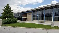 Abbey Park High School, commonly referred to as APHS, is a secondary school located in the town of Oakville, Ontario in the Greater Toronto Area. Abbey Park High School was opened at its present location in the wake of the closure of Queen Elizabeth Park High School, which was previously operating at its Bridge Road location, in Bronte. Abbey Park has more resources available to its students than other schools in the region because it inherited Queen Elizabeth Park's resources when it was closed. This allowed for the initial opening budget to be spent on new equipment. Students have open access to a weight room, home economics kitchen, library, and track. Abbey Park High School is also situated beside the Glen Abbey Community Centre, which houses the Glen Abbey branch of the Oakville Public Library.