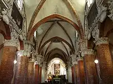 The chapels of Saints Bernard and Benedict were painted by followers of Bartolomeo Guidobono. The two other chapels, dedicated to the Virgin of the Rosary and an St Joseph were painted by Guidobono. The crypt, dating to 1688, was likely painted by Domenico Guidobono.[1]