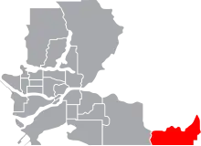 As of the 2012 federal electoral boundaries redistribution, the district includes the southeastern portion of the City of Abbotsford and the Upper Sumas 6 Indian reserve.[10]