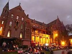 From 1863 to 1975 the Sisters of the Good Shepherd, an order of the Roman Catholic church, occupied the site. For a century from the 1860s onwards, the Sisters of the Good Shepherd provided accommodation, schooling and work for female orphans, Wards of the State and girls considered by the State and/or the Church to be in moral danger. There also existed a smaller number of older residents whose ages ranged from young adult to the elderly. These elderly residents, some of whom had been at the convent since childhood, were housed in a separate dormitory. There were vegetable and fruit gardens, dairy and poultry farms and a piggery. Income to buy what could not be grown or made on-site was generated through lace-making and commercial laundry services. The Convent was able to house up to 1,000 residents and was largely self-sufficient through its farming, Industrial School and laundry activities.[2] As with many such institutions of its era, conditions for the girls was often austere.[6] The large buildings were largely unheated and girls were pressed into laundry and other activities that involved long hours and no pay. Children housed at the convent, as recently as the 1960s, have reported that the daily operation of the convent was draconian.