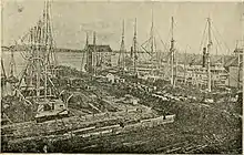 Working on ships, including whaling ships, was desirable for free blacks and fugitive slaves, because the shipping industry welcomed workers of all races.[6] The whaling industry saw a huge turnover in crew members and African-Americans added to the labor pool. By 1848, one in six crew members on whaling ships were black, according to Michael Dyer of the New Bedford Whaling Museum. Crew members shared cramped quarters in the bunk room on the ship, sleeping on bunks or in hammocks.[2][lower-alpha 2]