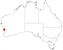 It is native to an area on the west coast in the Wheatbelt region of Western Australia where it is commonly found growing in gravelly lateritic loam or clay soils.[1]