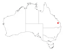 It is endemic to a small area on the Binjour Plateau in south eastern Queensland near Gayndah growing in red loamy soils as a part of heathland or open Eucalyptus woodland communities.[2]