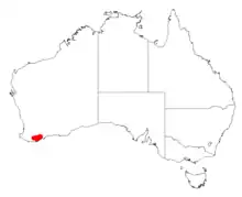 It is native to an area in the Great Southern region of Western Australia where it is found growing in sandy loam soils.[1] The range of the plant extends from the south east of Ongerup down to around the Gordon Inlet in the south east where it is commonly situated on creek flats as a part of Eucalyptus occidentalis woodland communities.[2]