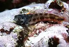 Acanthemblemaria hastingsi, the Cortez barnacle blenny, is a species of chaenopsid blenny found in the Gulf of California, in the eastern Pacific Ocean. Males can reach a maximum length of 5.1 cm (2.0 in) SL, while females can reach a maximum length of 4 cm (1.6 in).[2] The specific name honours the marine biologist Philip A. Hastings of the Scripps Institution of Oceanography.[3]