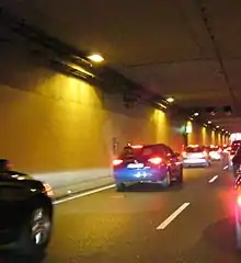 The accordion effect in road traffic refers to the typical decelerations and accelerations of a vehicle when the vehicle in front decelerates and accelerates. These fluctuations in speed propagate backwards and typically get bigger and bigger further down the line, resulting in reduced throughput of road traffic. For this reason, the Norwegian Public Roads Administration recommends that each driver should try to follow the accelerations of the vehicle in front closely, and keeping a steady gap that is neither too small or large.[1] Too small gaps and sudden braking can lead to rear ending.