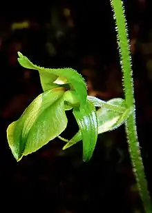 Achlydosa glandulosa is a species of orchid endemic to New Caledonia and the only species of the genus Achlydosa.[1] This species has previously been placed in the genus Megastylis.[2] Its closest relative is Pterostylis,[3] the sole other genus of subtribe Pterostylidinae.