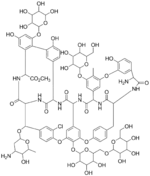 Actaplanin is a complex of broad-spectrum antibiotics made by Actinoplanes bacteria.[1][2] Research carried out by a group in Eli Lilly and Co. in 1984 identified several actaplanins using high-performance liquid chromatography.[3][4][5] Actaplanins A, B1, B2, B3, C1 and G were shown to be composed of the same peptide core, an amino sugar, and varying amounts of glucose, mannose, and rhamnose.[6]