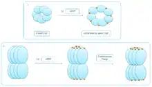 For folded proteins, unfolded proteins, and long peptides, ClpP must be activated by a protein in the family of ATPase associated with diverse cellular activities (AAA proteins), such as ClpA, ClpX, or ClpC.[12] These chaperone proteins are responsible for hydrolyzing ATP to ADP, harnessing the energy, and then taking folded proteins and unfolding them.[14] Next, Clp-ATPases slip the unfolded proteins into the degradation chamber within ClpP, allowing for processive degradation of the substrate.[12][15] This process is tightly regulated with the hydrolysis of ATP to prevent uncontrolled protein or peptide degradation that would be harmful to the cell.[4]