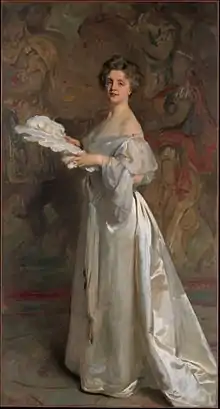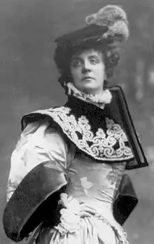 Rehan was so popular in the 1880s and '90s that she played over 200 parts. George Bernard Shaw, Mark Twain, and Oscar Wilde (who wrote the part of Mrs. Erlynne in Lady Windermere's Fan with her in mind)[10] were among her many admirers. And women everywhere strove to imitate her diction, demeanor, and even her dresses. The Chicago Evening Mail reported on the fad of women impersonating Rehan's speech, ladies' hats were named for her, and dressmakers offered her costumes for free in order to get their designs in front of the public.[11]
