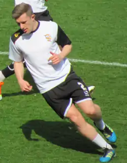 He lost his first-team place to Richard Duffy at the start of the 2012–13 season. He was returned to the starting line-up at the end of October, after Duffy was sidelined with a twisted ankle.[38] Duffy returned to the first team after making his recovery, though Yates was preferred in the end of season run-in and was hopeful of winning a new contract in the summer.[39] He was named in the League Two Team of the Week for his performance in a 3–2 win at Dagenham & Redbridge on 29 December.[40] Vale secured promotion with a third-place finish at the end of the season, with Yates making 32 appearances. He agreed to sign a new two-year contract in the summer.[41] Yates remained a key first-team player during the 2013–14 season, and played 41 games as the club posted a ninth-place finish in League One. Swiss youth international Frédéric Veseli was brought in on loan to replace him at right-back, but Yates won back his first-team place in November after a series of consistent performances.[42] He ended the season with 28 appearances to his name as Veseli eventually won back his first-team place.[43] Yates signed a new one-year contract in June 2015.[44]