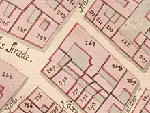By 1689 the corner property, as No. 225 in the city's East Quarter (Øster Kvarter), was owned by a Justice Councillor (justitsråd) Muhle.[1]