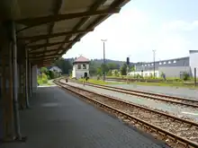 The station survived the Second World War largely undamaged, only suffering from low-flying strafing, which caused little damage. After the war, the second track of the railway was dismantled for reparations and many rail connections within the station became superfluous and were dismantled.[5] The traffic to Roßbach, which was interrupted at the end of the Second World War, was not resumed, and the route to Roßbach between 1946 and 1951 was also dismantled. The second track of the Plauen–Cheb line was not rebuilt until 1979.