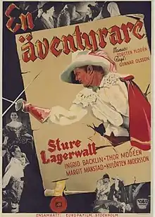 Adventurer (Swedish: En äventyrare) is a 1942 Swedish historical adventure film directed by Gunnar Olsson and starring Sture Lagerwall, Ingrid Backlin and Margit Manstad.[1] It was shot at the Sundbyberg Studios in Stockholm. The film's sets were designed by the art director Max Linder. It is loosely based on the life of the seventeenth century writer Lars Wivallius.