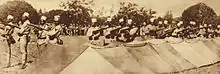 West Africa's largest single state during the 19th century, the Sokoto Caliphate of northern Nigeria moved into the 20th century with its military system intact- the traditional mix of infantry and cavalry. New powers and technologies however were appearing on the scene. Some cavalry-strong states like the Tukolor, made sporadic attempts to incorporate weapons like artillery but integration was poor.[5] Sokoto largely stuck to the old ways, was annexed and incorporated in the British Empire in 1903. Sokoto's soldiers, whether horse or foot, had very few guns. The Caliphate's tactics were to attack in a series of set-piece battles, with thundering cavalry charges leading the way, followed by infantry armed with bow, sword and spear. As the fighting men surged forward into combat, their movements were accompanied by loud music and drums These however were not enough, and assaults were quickly routed by the modern weaponry of virtually invulnerable British squares. Traditional fortified cities and forts also made a poor showing and were usually rapidly breached by British artillery.[6] Thus ended the heyday of the centuries-old West African cavalry-infantry combination. In Southern Africa the mounted men of the Boer forces also saw defeat in 1902, as imperial troops implemented a blockade and scorched earth policy against their mobile tactics. This outcome paralleled general developments on the battlefield, as mounted forces gradually lost their relevance under modern firepower.[4]