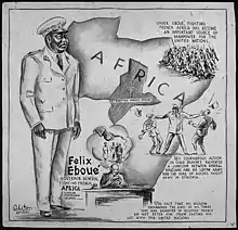 Numerous Africans participated in World War II with black troops from France's colonial domains making up the bulk of the non-Europeans. Senegalese (sometimes a generic name for black troops from French colonies) put up a stiff fighting resistance against the Nazis during the great German Blitzkrieg into France. These, African troops were also to form a large part of the Free French Forces that maintained French resistance under Charles de Gaulle, outside the continent. In Africa, Felix Eboue, a black colonial administrator, was instrumental in rallying the territory of Chad for the Free French, adding thousands of fighting troops and masses of equipment to de Gaulle's cause. Other colonial formations were made up of troops from north Africa. As the Germans were beaten back, African troops made up the bulk of the initial forces that participated in the liberation of France during 1944, including supporting the French crossing of the Rhine.