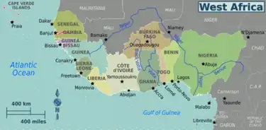 West Africa consists of the following 15 countries: Benin, Burkina Faso, Cabo Verde, Gambia, Guinea, Guinea-Bissau, Ghana, Ivory Coast, Liberia, Mali, Niger, Nigeria, Senegal, Sierra Leone, Togo. Of these western countries, some have fairly stable vulture populations such as the Hooded Vultures of The Gambia and Guinea-Bissau.[12] On the other hand, there are countries like Senegal which has regions that have faced 80% vulture decline in the last half century.[13] The trade of vultures for bushmeat, as well as belief use, is the primary factor for the decline of vulture population in West Africa.[14]