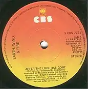 "After the Love Has Gone" is a single by Earth, Wind & Fire released in 1979 on ARC/Columbia Records.[1] The song reached No. 2 on both the US Billboard Hot 100 (behind The Knack's "My Sharona") and the US Billboard Hot R&B Singles chart, No. 4 on the UK Pop Singles chart, and No. 3 on the US Billboard Adult Contemporary Songs chart.[2][3][4][5] "After the Love Has Gone" was certified gold in the US by the RIAA and silver in the UK by the BPI.[6][7]