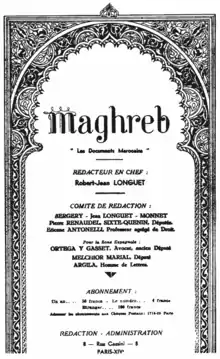 The protest against the Dahir was only one of Balafrej and his companions' commitments. At the beginning of 1932, Balafrej, Ouazzani, and Ben Abdeljalil approached Robert-Jean Longuet—Parisian lawyer, anti-colonialist, and socialist—to secure the defence of the Moroccan nationalists harassed by the authorities. Balafraj and Ouazzani established the journal Maghreb in 1932.[3]