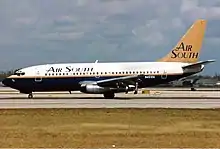 The company was founded in 1993,[2] though the first aircraft, a used Boeing 737-200, arrived with Air South on 12 July 1994. Over the following months, additional aging 737-200s were added (all of them had been delivered to their original operators between 1968 and 1979), and by 1995, the fleet had grown to a total of seven airliners.[4] The initial business model of Air South in the first year of operation showed a modest profit, however after management changes and a refocusing on new airline routes, the airline failed and went bankrupt.