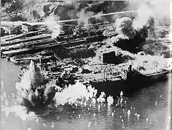 USAAF units based in China attacked the Hong Kong area from October 1942. Most of these raids involved a small number of aircraft, and typically targeted Japanese cargo ships which had been reported by Chinese guerrillas.[3] By January 1945 the city was being regularly raided by the USAAF.[4]