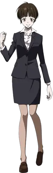The 20-year-old main female protagonist of Psycho-Pass, Akane joins Division One of the Public Safety Bureau's Criminal Investigation Division as a rookie Inspector. She is initially uncomfortable with apprehending or executing people based on their potential criminal behavior.[15] On her first assignment, Akane stuns Enforcer Shinya Kogami and prevents the execution of a kidnap and assault victim whose Psycho-Pass spiked because of the trauma they had endured. While Akane is reprimanded, Kogami expresses gratitude for her intervention.[16] Akane's tendency to question protocol puts her at odds with the cautious senior Inspector, Nobuchika Ginoza.[17] As Division One pursues criminal mastermind Shogo Makishima, who seeks to undermine Sibyl, Makashima retaliates by taking Akane's best friend Yuki hostage. Makashima threatens to execute her unless Akane uses a shotgun to kill him, instead of relying on Sibyl and her Dominator. Akane attempts to use the shotgun, but hesitates and misses. Makishima retaliates and executes Yuki in front of her.[18] Akane and Kogami later arrest Makishima but he escapes P.S.B. custody, prompting Kogami to go rogue to kill Makishima himself.[19] Sibyl reveals the true nature of the Sibyl System: a group mind of asymptomatic human brains working in tandem to judge individuals. Sibyl wants to add Makishima's brain to their collective and asks Akane to arrest Makishima before Kogami can kill him, in exchange for sparing Kogami's life. Akane accepts Sibyl's offer and leads Division One to Makishima as he attempts to poison the country's food supply.[20] Akane is incapacitated while doing so. Kogami uses the opportunity to execute Makashima.[21] Sibyl informs Akane it will not kill her because it knows she will keep its secret out of self-preservation, and to avoid the mass chaos revealing it would cause.[21]