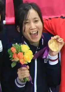 Akiko Adachi (安達 阿記子, Adachi Akiko, born 10 September 1983[3]) is a Japanese goalball player who won a gold medal at the 2012 Summer Paralympics.[4] She scored the game-winning goal in the final against China.[5]