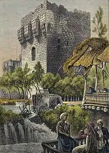 Named after Najm ad-Din Ayyub the son of Shadhi Ibn Marwan a military elite fortress commander from Dvin, Armenia who became the governor of Tikrit, Najm ad-Din Ayyub then succeeded his father as the governor of Tikrit and shortly after he left Tikrit to become the governor of Baalbek under Imad al-Din Zengi. Then he surrendered Baalbek and went to Damascus and settled, where his son Saladin grew up and founded the Ayyubid dynasty.[5][6]