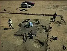 At the site of al-Khiday 2 there are around 32 Neolithic burials which mark the movement of Neolithic peoples here following the base camps of the Mesolithic occupation,[2] this occupation induces the beginning of the degradation of the Pre-Mesolithic graves.[3] Many of the Neolithic burials are with burial goods such as Shaheinab Pottery and other datable material, they resemble many other ritualistic burials of the other cemeteries in Sudan from this time. It is estimated that the Neolithic occupation at this site lasted from around 4550 - 4250 cal years BC.[6]