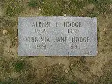 Little is known of Hodge's private life. He married three times, and it is sometimes erroneously stated he fathered three children. In reality, he fathered a daughter, Diane, during his first marriage to Betty; the boy and girl he was frequently photographed with in the 1950s were John Taft Potter Jr. and Lois Trimble Potter, his step children from his second wife, Doris Ruth Trimble Hodge. Hodge and his third wife, Jane Virginia Hodge,[3] a former showgirl, are buried in the same grave at Kensico Cemetery in Westchester County, New York.