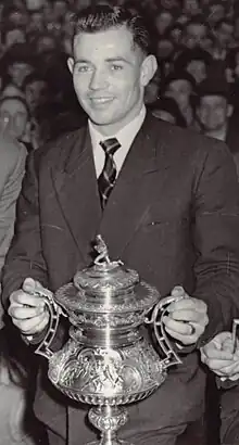 Alan Davies holding the Lancashire Cup (1956-57 season)