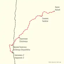 The first section of the railway (Alapayevsk–Mugay) commenced operations in July 1898. Construction was undertaken by French businessman A.Illero. The railway had a maximum length of about 600 kilometres (370 mi) in the 1970s, though estimates vary.[1]