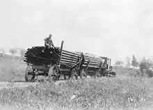 The ARC did not favor use of these trails by trucks or automobiles, declaring in 1914 that it made "no pretense of having built roads adapted for automobile travel",[2] nevertheless by 1922 90% of the summer traffic was with motorized vehicles.[7] Typical initial construction standards were 10-foot (3 m) width for light traffic trails and 16 feet (5 m) for heavier traffic trails, usually just graded through the countryside. In permafrost areas corduroy road construction techniques were used. Small streams were bridged with culverts.[2] Initially larger streams were forded or had ferries provided (such as the ferry across the Tanana at Rika's Landing), but as time and funds permitted, larger bridging projects were carried out, such as the 450-foot (137 m) bridge across the Tazlina River, and the 420-foot (128 m) bridge across the Tonsina River.[2]
