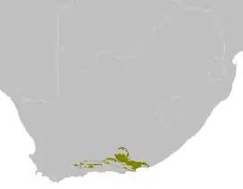 The thickets grow on well-drained sandy soils in the wide valleys of the Great Fish, Sundays and Gamtoos River in the Eastern Cape and, extending further northwest, in the valleys of the Cape Fold Belt. Thicket is vulnerable to fire and to grazing so has always been restricted to valley areas where these are less of a threat than on open plains.[1]