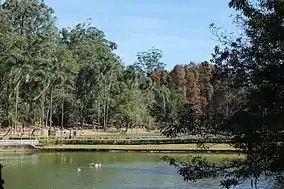 Vegetation includes exotic species such as eucalyptus, pinheiro-do-brejo (Taxodium distichum) and cryptomeria, as well as native trees such as pau-brasil (Caesalpinia echinata), carvalho-nacional (Quercus faginea), pau-ferro (Libidibia ferrea) and jatobá (Hymenaea courbaril). Fauna include robust capuchin monkeys, Brazilian squirrel (Sciurus aestuans), opossums (Didelphis), toucans, storks, herons, rufous-collared sparrow (Zonotrichia capensis) and kingfishers.[1]