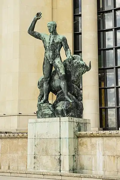 This prize winning bronze work dates to 1937 and was commissioned for the 1937 Paris Exhibition Exposition Internationale des Arts et Techniques dans la Vie Moderne and placed on the main terrace of the Palais de Chaillot gardens. A plaster working model is held in Poitiers' Musee Sainte-Croix.[6][7]