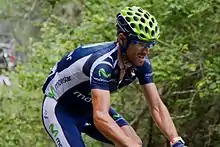 Alejandro Valverde Belmonte (born 25 April 1980) is a Spanish cyclist, who competed as a professional in road bicycle racing from 2002 to 2022, and now competes in gravel cycling for the Movistar Team Gravel Squad.[6]