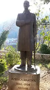 Aleksa Šantić (Serbian Cyrillic: Алекса Шантић, pronounced [ǎleksa ʃǎ:ntitɕ] (ⓘ); 27 May 1868 – 2 February 1924) was a Bosnian Serb poet and writer. Šantić wrote about the urban culture of Herzegovina, the growing national awareness of Herzegovinian Serbs, social injustice, nostalgic love, and the unity of the South Slavs. He was the editor-in-chief of the magazine Zora (1896–1901). Šantić was one of the leading persons of Serbian literary and national movement in Mostar.[1][2] In 1914 Šantić became a member of the Serbian Royal Academy.