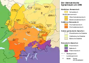 Swabian, Low Alemannic (Upper Rhine), Low Alemannic (Lake Constance), High Alemannic, Highest Alemannic.