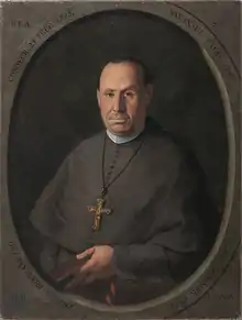 When he was preparing to receive the transference of the bishopric of the Diocese of Luanda, a conflict with the Captain-General of Angola, José de Almeida e Vasconcelos, 1st Baron of Mossâmedes, put him in opposition to the Portuguese government.[1] As a consequence, the authorities refused his confirmation as prelate to Luanda. Offended, the bishop departed secretly for Lisbon, where stayed at the Convent of Brancanes.