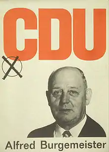 ![]() Candidate poster of Alfred Burgemeister for the 1969 Bundestag elections | |