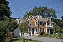 The Alfred Drowne Road Historic District of Barrington, Rhode Island, encompasses a suburban area developed between about 1860 and 1910, a period of significant suburban growth in Barrington spurred by the connection of the town by rail to Providence in 1855. This 27-acre (11 ha) residential area was before that time farmland owned by Alfred Drown, whose c. 1830 farmhouse still stands at 13 Alfred Drowne Road. The house of his son Benjamin, built c. 1856, is at number 27. The district includes properties along Alfred Drowne Road, as well as a few properties on Washington Street and Annawamscutt Road which are immediately adjacent.[2]