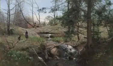In addition to his paintings, he created an altarpiece for Vimmerby Church and some of his works were used as illustrations in Lappland. Det stora framtidslandet (Lappland; The Great Land of the Future, 1908), edited by Olof Bergqvist and Fredrik Svenonius.[1] His favorite areas for landscapes were Mälardalen, Dalarna and Bergslagen. he occasionally worked as a drawing teacher.