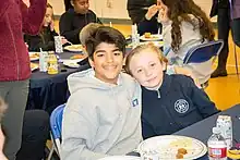 The school defines community service for students as “giving their effort, willingly and freely, to an individual or organization that benefits from their help and/or improves the quality of life for the community.” The school website goes on to state “The Outreach program involves students at every age in school-wide projects and in service areas appropriate to each grade level.”[32]