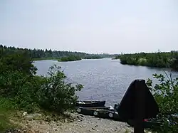 The Allagash River is a tributary of the Saint John River, approximately 65 miles (105 km) long,[1] in northern Maine in the United States. It drains in a remote and scenic area of wilderness in the Maine North Woods north of Mount Katahdin. The name "Allagash" comes from the Abenaki language, a dialect of the Algonquin languages, spoken by the Penobscot Tribe.[2][3] The word, /walakéskʸihtəkʸ/, means "bark stream".[4]