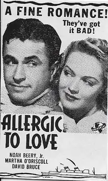 Allergic to Love is a 1944 American comedy musical romance film directed by Edward C. Lilley and starring Martha O'Driscoll, Noah Beery Jr. and David Bruce.[1]