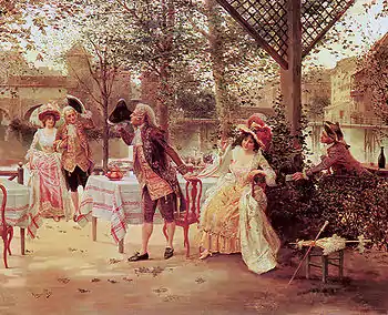 While very little is known of his life, it is believed that he received some academic training. As with many of his contemporaries, his works were done on a small, intimate scale that created a need for careful examination by the viewer. Most of his work featured pretty women and handsome men in 18th century costumes, situated in market places.