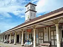 The old, single-platform station, with its distinctive clock tower, was closed 29 January 2013 to facilitate the construction of a new modern station under the Ipoh–Padang Besar electrification and double-tracking project.[1] A temporary station opposite the old station was constructed along Jalan Tanjung Bendahara, which remained in operation until the new station adjacent to the old one began operations on 12 June 2014.[2] The old station has been conserved and transformed into the Railway Tavern restaurant and bar.[3] In 2020, a century-old Hindu shrine, Sri Madurai Veeran, situated at the entrance of the station, was demolished to make way for a road project despite local objections.[4][5] It was built by Indian labourers who laid tracks from Butterworth to the northern frontier in the early 20th century. It was featured in the Malaysian film Ombak Rindu, in 2011.