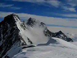 The Alphubel (4,206 m) is a mountain of the Swiss Pennine Alps, located between the valleys of Zermatt and Saas in the canton of Valais. It is part of the Allalin Group, a subgroup of the Mischabel Group, which culminates at the Dom (4,545 m). The summit of the Alphubel consists of a large ice-covered plateau, part of the Fee Glacier on its east side. The west side of the mountain is more rocky and much steeper. It overlooks the Weingartensee.